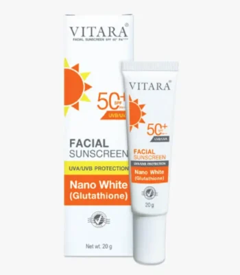 Defend your skin with Vitara Facial Sunscreen SPF50+ PA++++. Its lightweight formula shields against UVA/UVB rays while Aloe Vera soothes and hydrates — perfect for daily wear in Bangladesh’s climate.